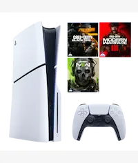 - Included Bundle: PS5 console, 1 DualSense controller, Call of Duty Black Ops 6 (B06), COD Modern Warfare II (PS4/5 voucher), COD Modern Warfare III voucher