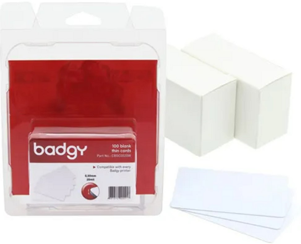 Evolis Multi Function Thermal Transfer Printer - including 1 Badgy100 card pinter, 1 color ribbon for 50 prints, 50 thick PVC cards (0,76mm - 30mil), 1 Evolis Badge Studio software licence, 45 sec/card print speed, 80 cards/hour, colour sublimation and monochrome Thermal transfer print mode, Retail Box , 1 year Limited Warranty